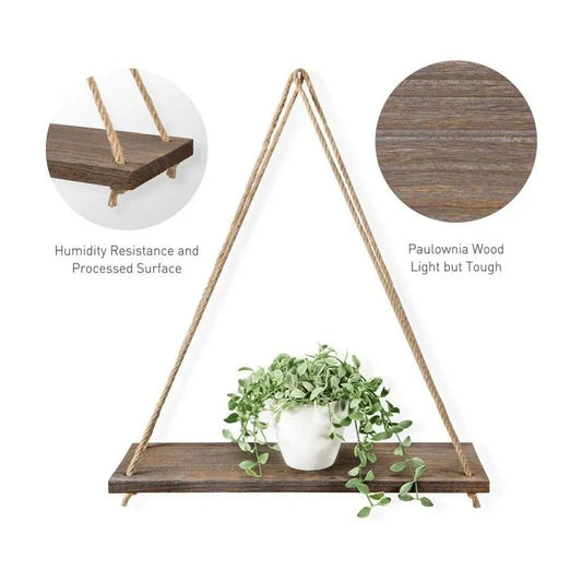 DJO Etagere murale suspendue en bois rustique avec corde