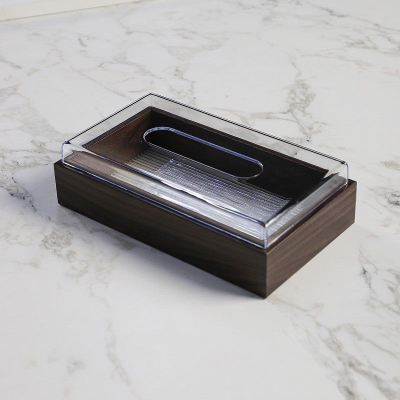 Gardez vos lingettes toujours à portée de main grâce à cette boîte de rangement élégante. Conçue avec une finition bois et un corps transparent effet cristal, elle combine praticité et raffinement. Son ouverture centrale permet un accès facile et rapide, tout en protégeant vos lingettes de la poussière et du dessèchement. Idéale pour un usage quotidien à la maison, au bureau ou lors de vos réceptions.