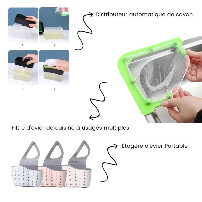 pack de cuisine contient :Étagère d'évier Portable , distributeur automatique de savon filtre d'évier offerte gratuite  .
